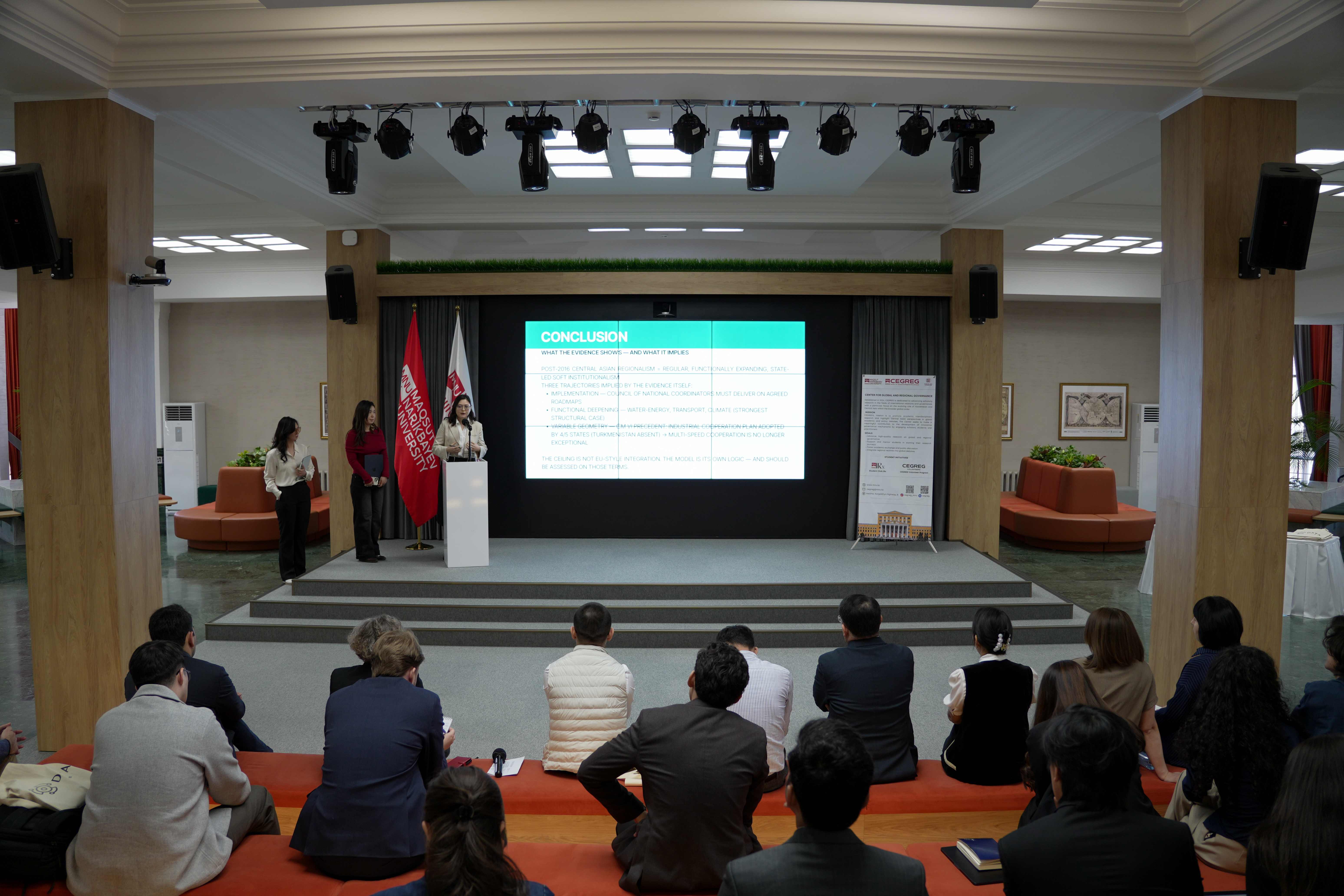 В рамках программы эксперты и участники обсудили ключевые вопросы развития региона, включая роль Центральной Азии в глобальных цепочках поставок и энергетическом переходе, инвестиционный климат Казахстана, перспективы развития транспортных коридоров, особенности регионализма в Центральной Азии, а также управление водными ресурсами и климатические вызовы.